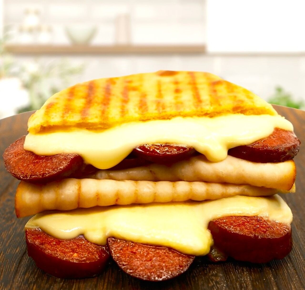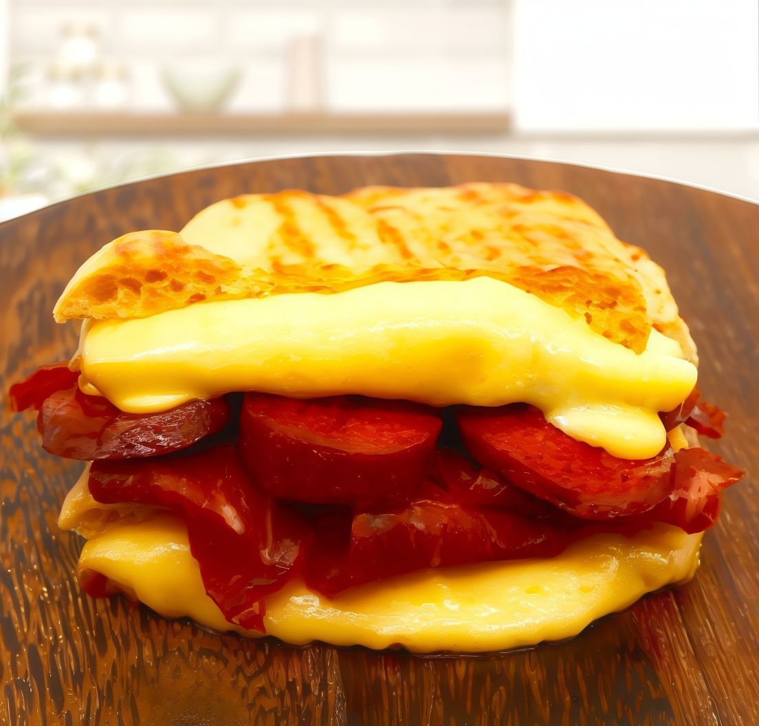 Bol sucuk, kaşar peyniri, özel sos.