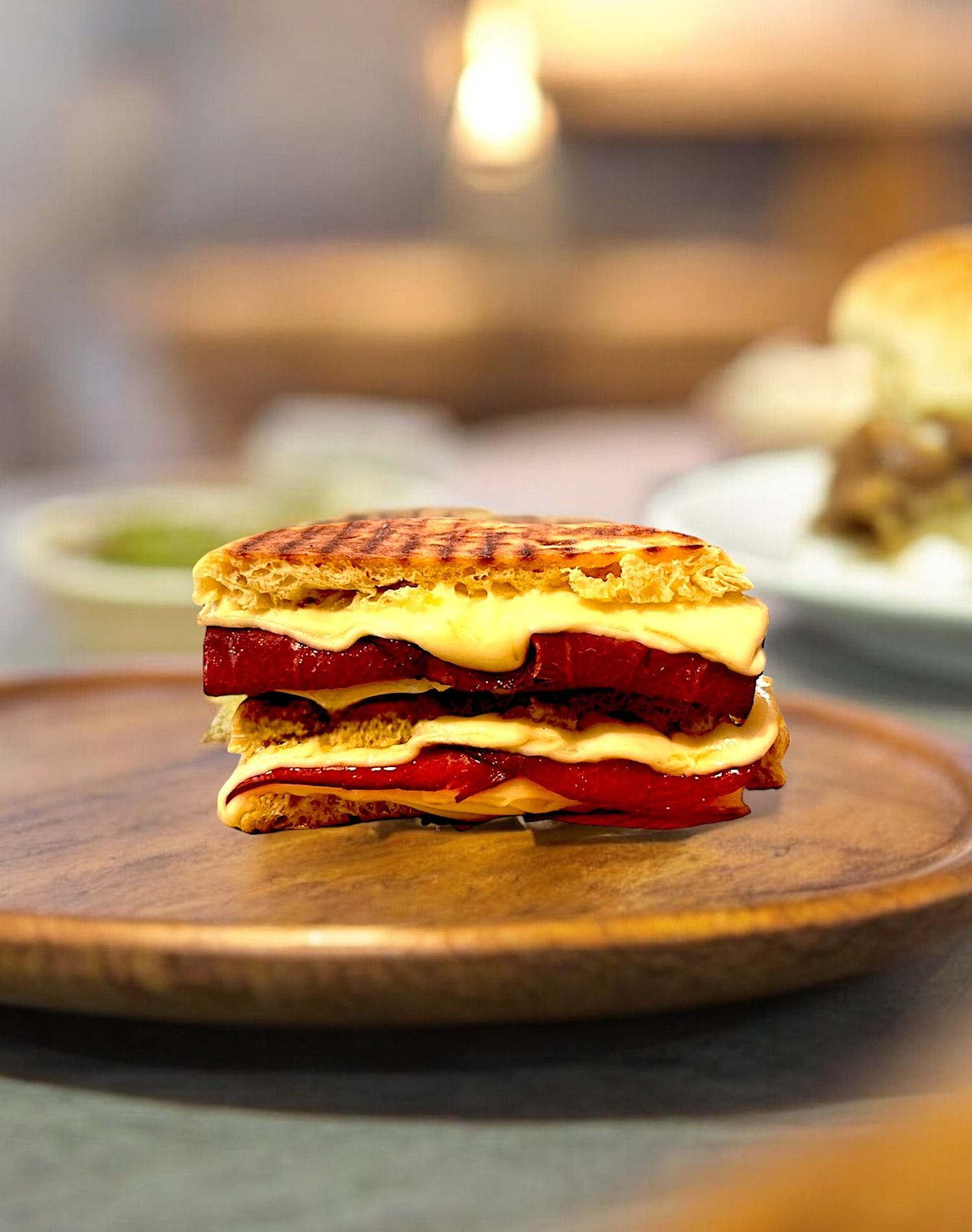 150 gr.Bazlama Ekmeğine; Çemensiz Antrikot Pastırma, Kaşar Peyniri.