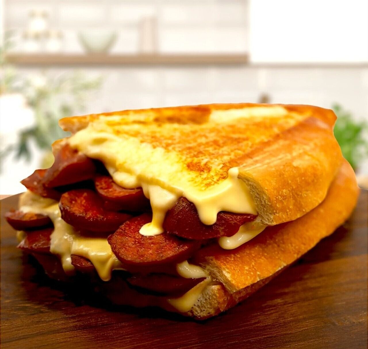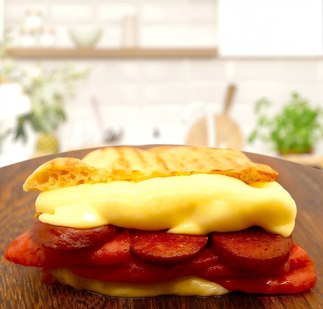 Bol sucuk, kaşar peyniri, özel sos.